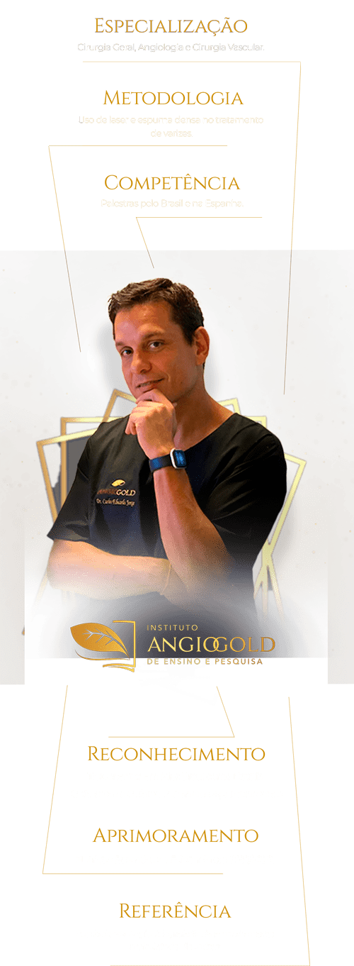 Nascido em Diamantina e formado pela renomada Faculdade de Medicina da UFMG, Dr. Cadu revolucionou o tratamento de varizes ao fundar a AngioGold em 2011. Com técnicas inovadoras, a clínica se tornou pioneira em Minas Gerais ao oferecer tratamentos sem cirurgia, priorizando o bem-estar do paciente. Seu compromisso com a excelência e inovação se reflete em sua trajetória e nas transformações que trouxe para a angiologia.